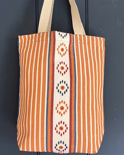 Tote Bag - Malmo, Carrot, Cornflower, Cranberry and Plain Linen Union, Lichen
