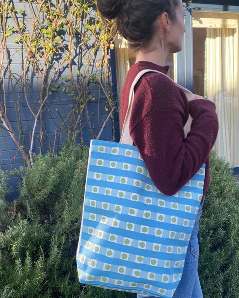 Tote Bag - Stockholm Stripe, Pigeon, Peach, Winter and Lattice Leaf, Moss, Damson
