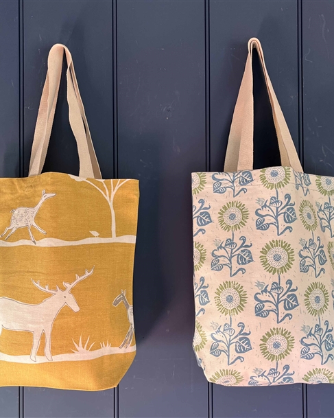 Sustainably stylish and wonderfully practical, our contrast tote bags are made from carefully saved fabric remnants — beautiful offcuts we simply couldn’t bear to waste. Each tote pairs two different nature-inspired designs, one on each side, giving you a reversible bag full of colour, character, and conscience.